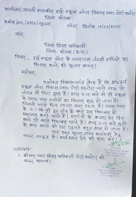 पत्र में उल्लेख है कि कई बार हाथियों की गतिविधियों के कारण सुबह से लेकर शाम 4 बजे तक कक्षाएं बाधित हो जाती हैं। विद्यार्थी स्कूल में फंसे रहते हैं और समय पर सुरक्षित घर नहीं लौट पाते। इस वजह से अभिभावकों में भय व्याप्त है और वे अपने बच्चों को स्कूल भेजने से हिचकिचाने लगे हैं।