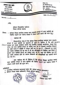 सांसद प्रतिनिधि प्रकाश दास महंत द्वारा पत्र लिखकर कराया अवगत